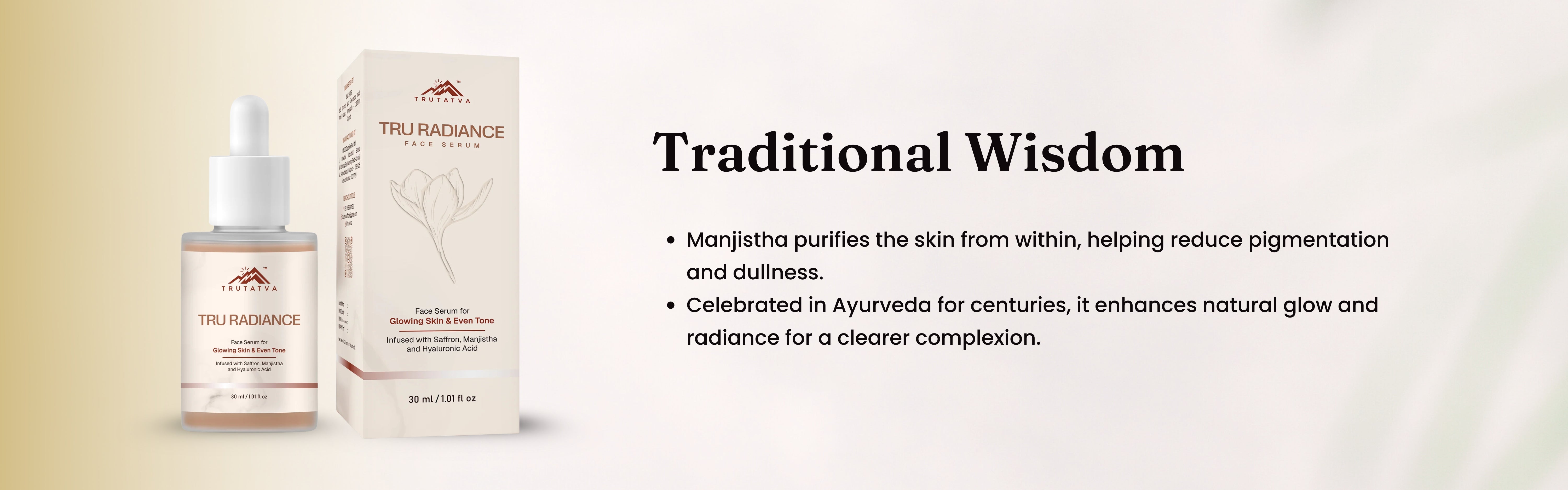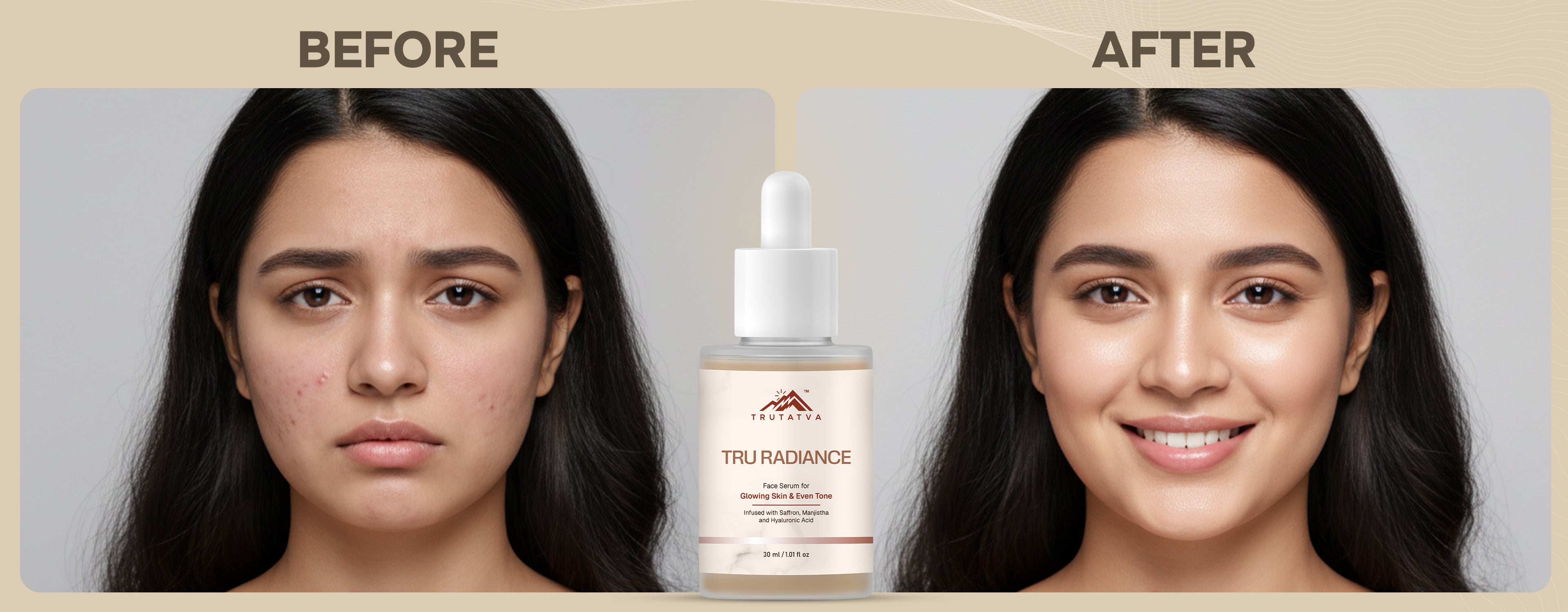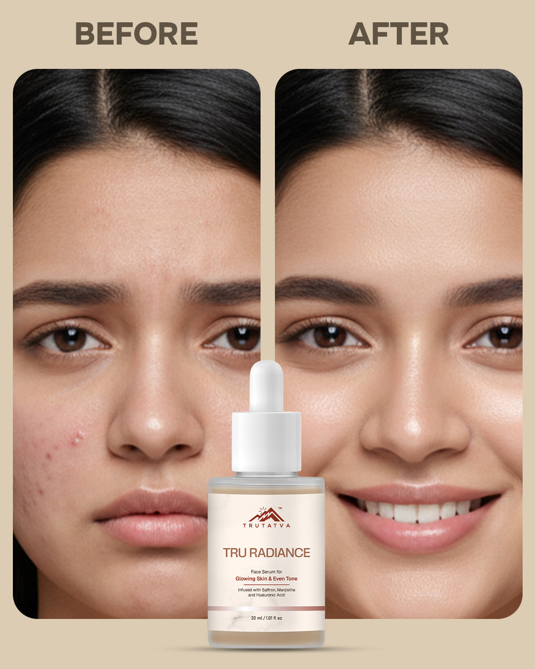 Tru Radiance is a luxury Ayurvedic face serum crafted to target pigmentation, uneven skin tone, and dullness. Blending traditional Ayurvedic herbs with modern skin science, it delivers deep nourishment while restoring natural glow.
